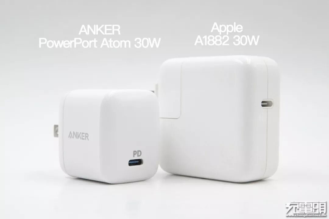 单看三围数据还体现不出充电器的极致小巧,但把ANKER 30W GaN充电器与苹果iPad 30W充电器进行对比后,体型的优势就很明显了。