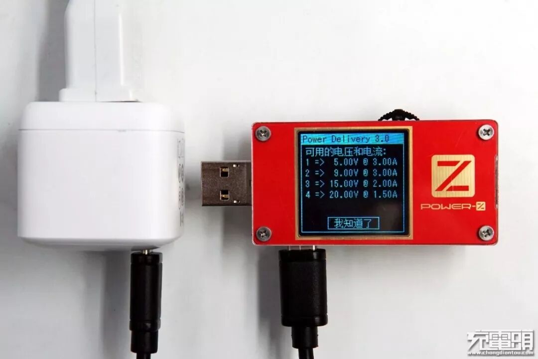 ChargerLAB Power-Z KT001测试仪对ANKER PowerPort Atom PD 1 GaN充电器进行检测,这次我们看下充电器的输出档位有哪些。从KT001测试仪的显示屏中可以看到该款充电器支持5V/3A、9V/3A、15V/2A、20V/1.5A四个USB PD输出档位,PD快充版本为3.0。