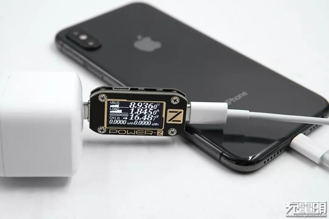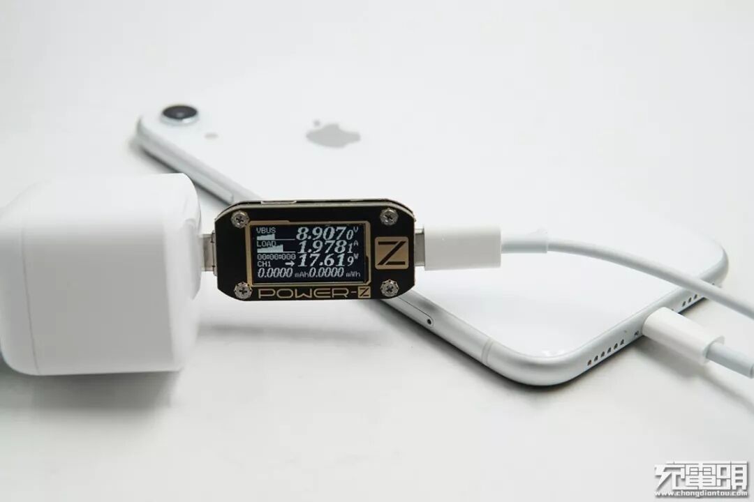 充iPhone XR,电压8.9V,电流1.97A,功率17.61W,开启PD快充。
