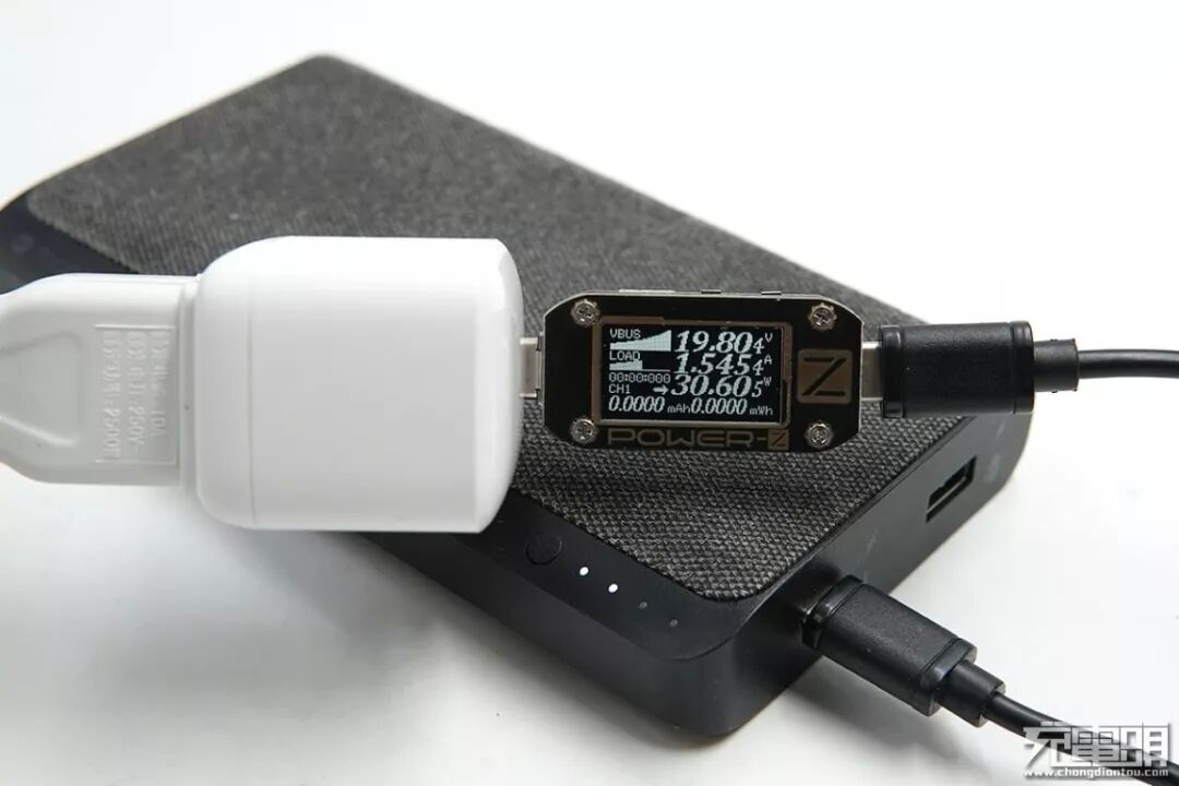 充魔狐 PD45W移动电源,电压19.81V,电流1.51A,功率30.11W,开启PD快充。