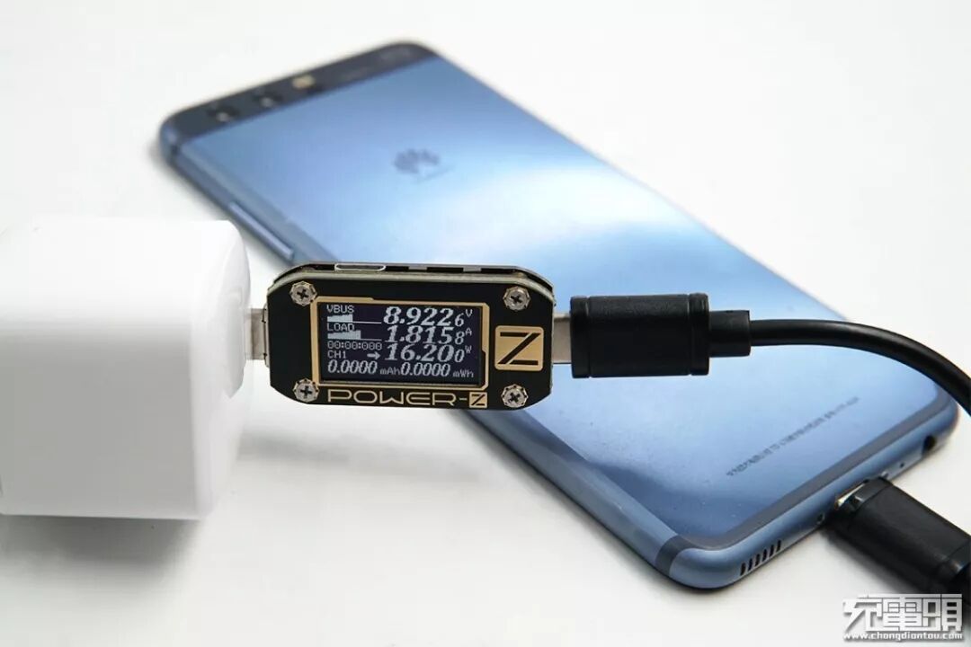 充华为P10,电压8.92V,电流1.81A,功率16.2W,开启PD快充。