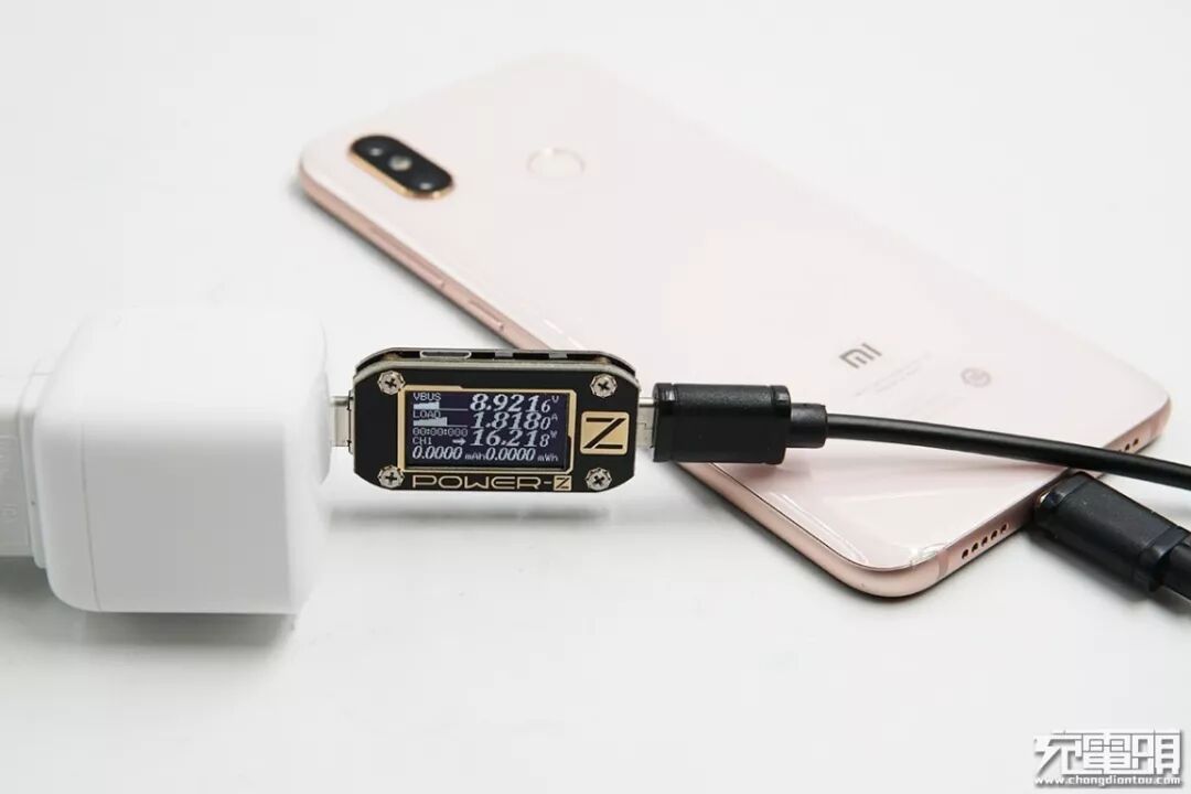 充小米 8手机,电压8.92V,电流1.81A,功率16.21W,开启PD快充。