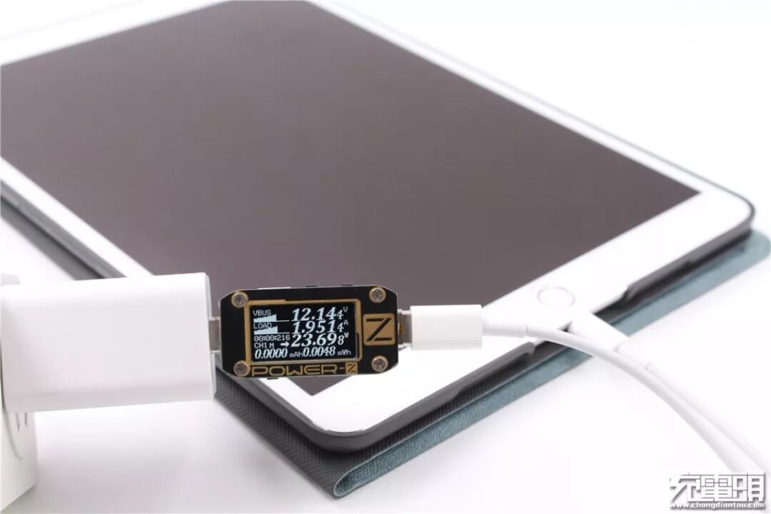 再来看充电器对iPad的兼容性,给iPad Pro(10.5寸)充电时,电压12.14V,电流1.95A,功率约为23.69W,支持USB PD快充。