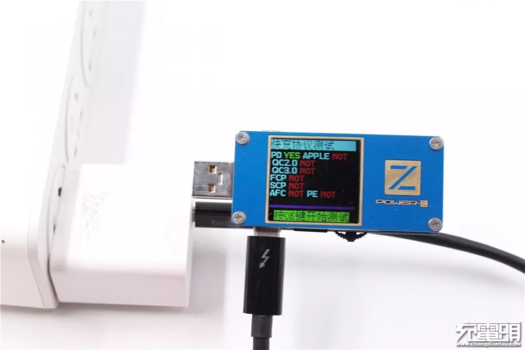 USB-A口,继续插入POWER-Z,快充协议测试显示,这个口支持Apple 2.4A、QC2.0、QC3.0、FCP、AFC。