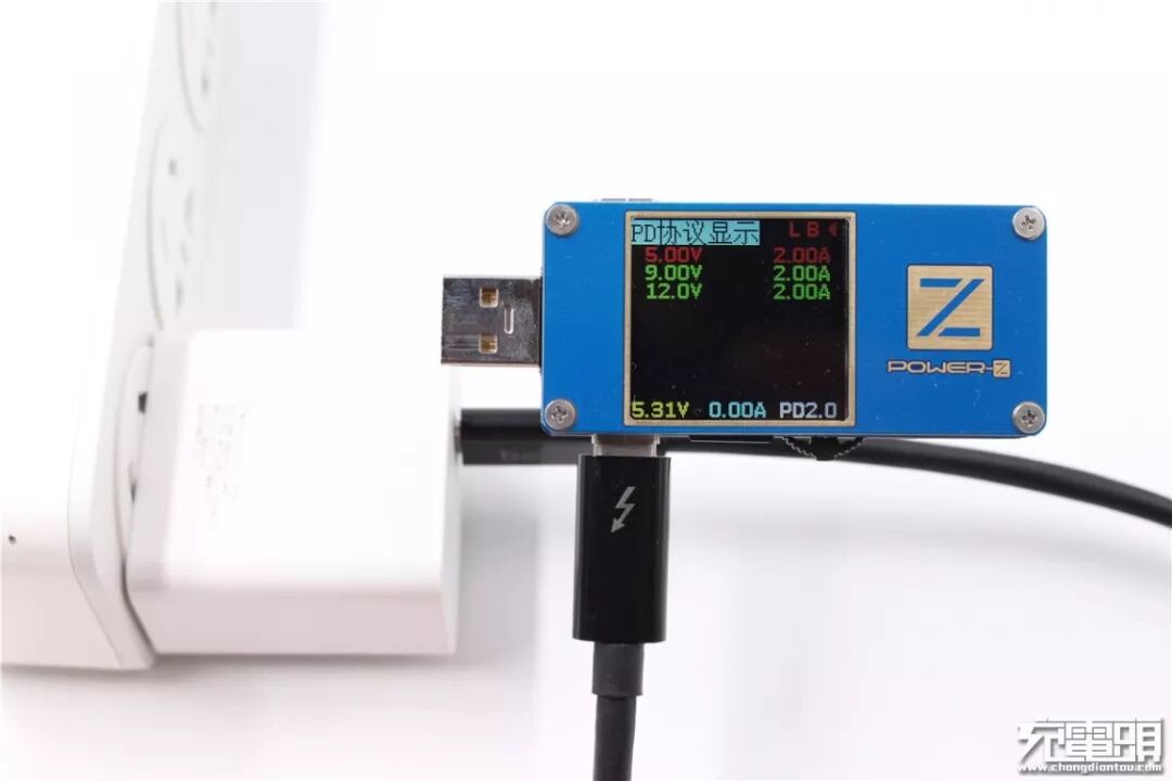 USB-C口,插入ChargerLAB POWER-Z USB测试仪,可以直观的看到协议和PDO报文。其中支持的协议有USB PD、Apple 2.4A、QC2.0、QC3.0、FCP、AFC。