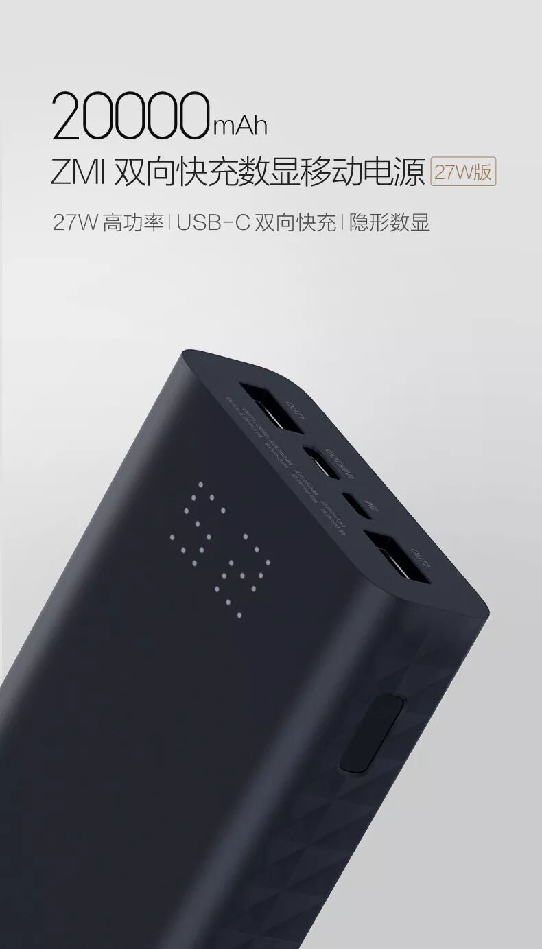 八、紫米20000mAh双向快充数显移动电源 27W版