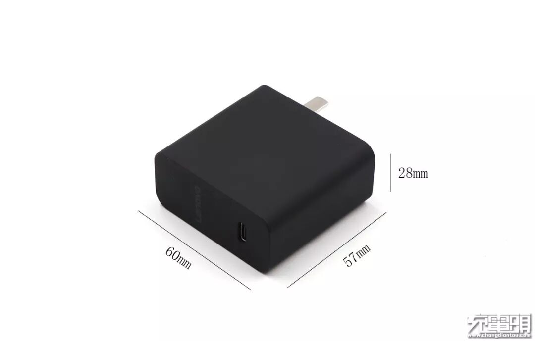 USB Type-C输出接口在充电器面板上,除此之外,还印有灰色的联想Logo标识。