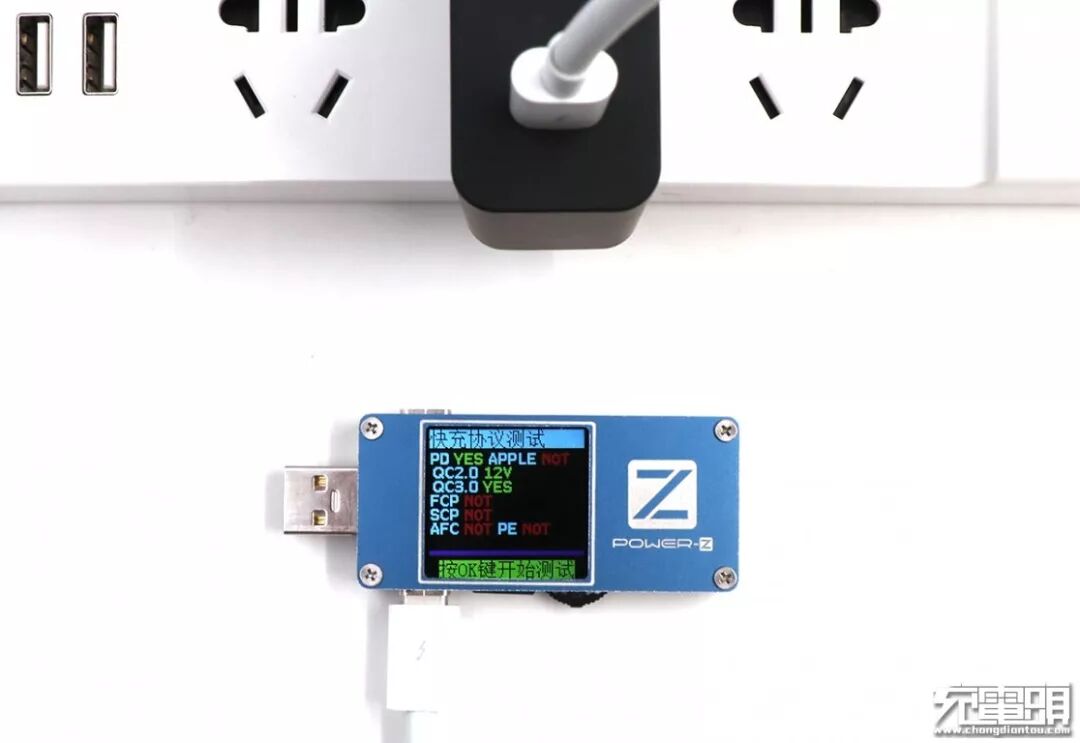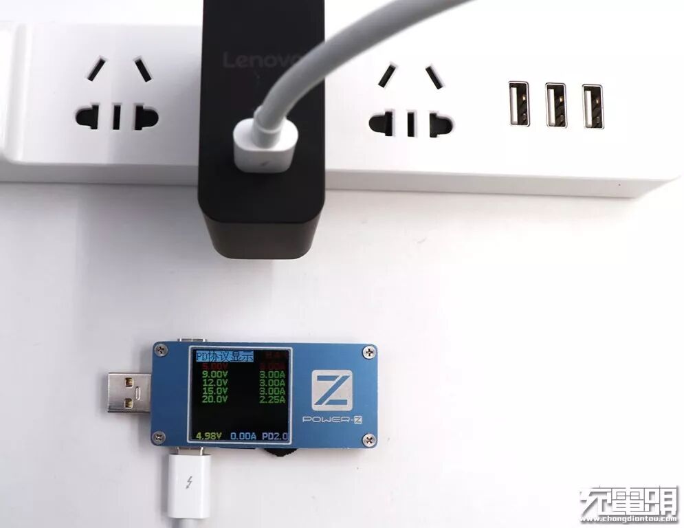 使用ChargerLAB POWER-Z FL001S进行协议测试,联想LS-45WTCPD充电器支持USB PD、QC2.0、QC3.0快充协议。