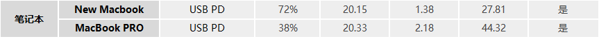 从图表中可以看出,,两款笔记本都进入了20V档位的USB PD快充;充MacBook Pro更是满载输出。