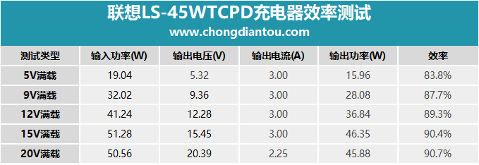 从测试来看,联想LS-45WTCPD充电器优缺点如下: