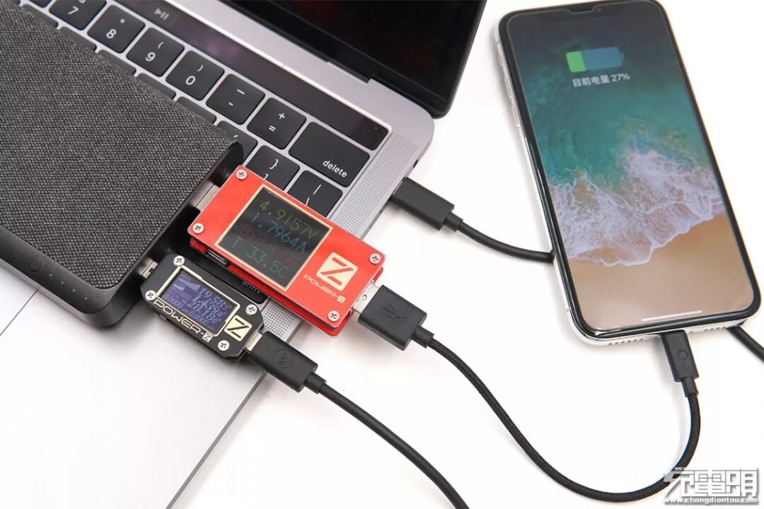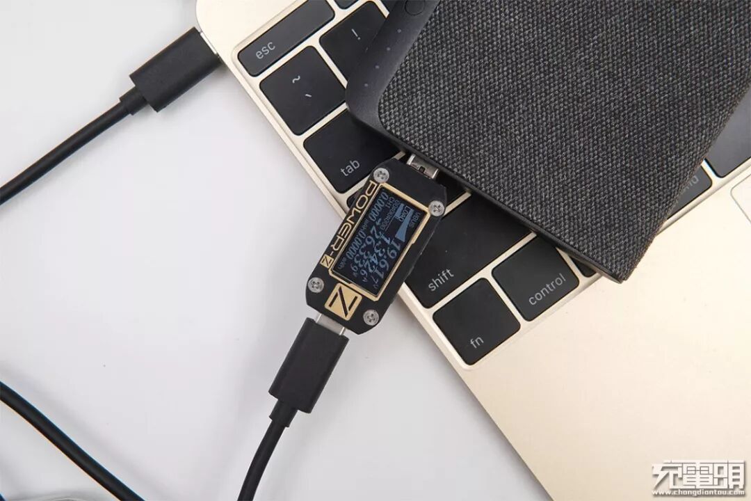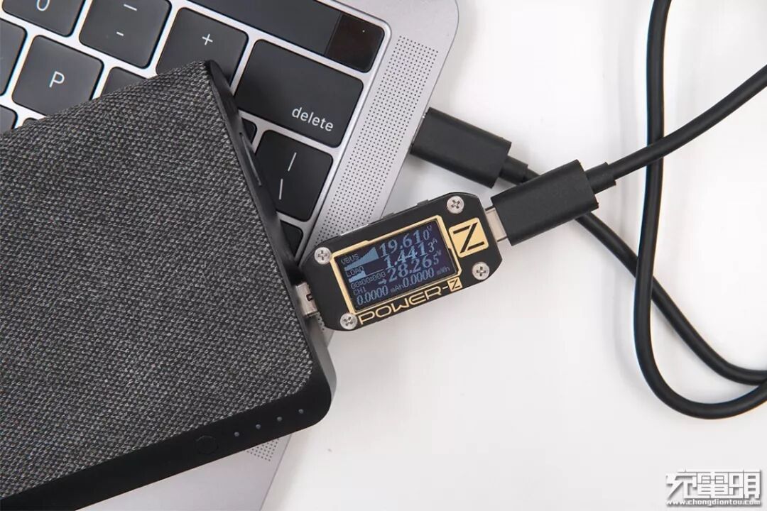 笔记本方面,因为移动电源具备20V的USB PD输出档位,充笔记本自然不在话下。试了两台苹果笔记本,均能握手20V档位的USB PD快充。