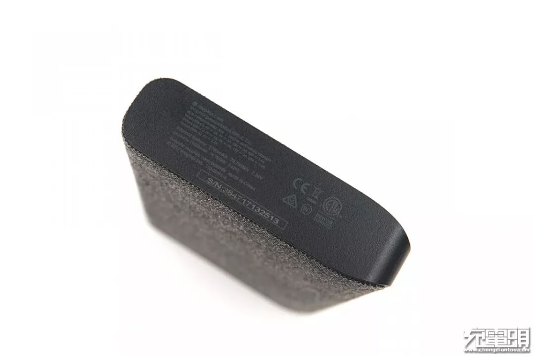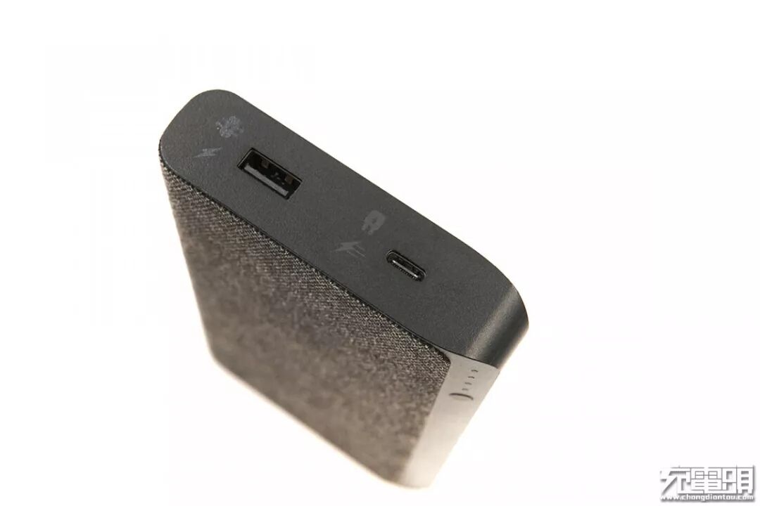 除了带来的手感体验,相比于采用一种材质做为外壳材料的普通移动电源,观感上面也有所提升。除此之外,这一层织物还有更好的防剐蹭、减震、防滑的作用,也具备一定的隔热效果。