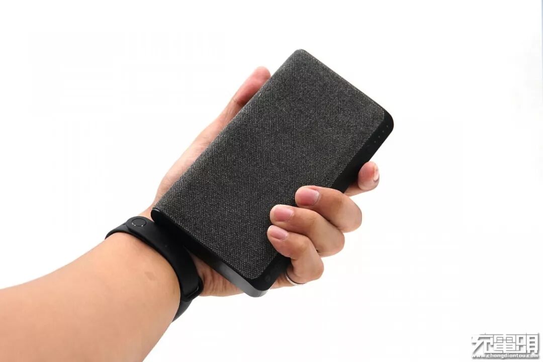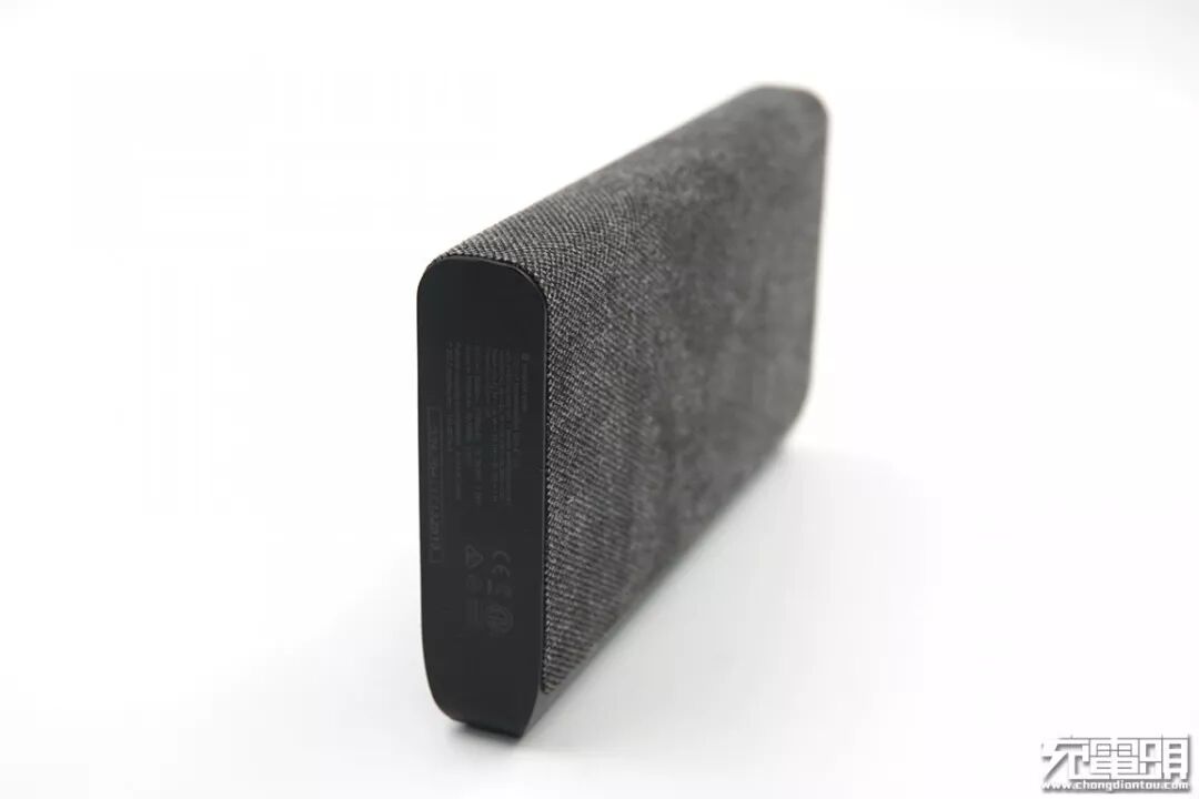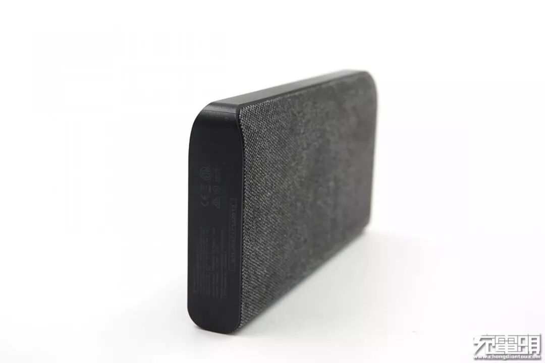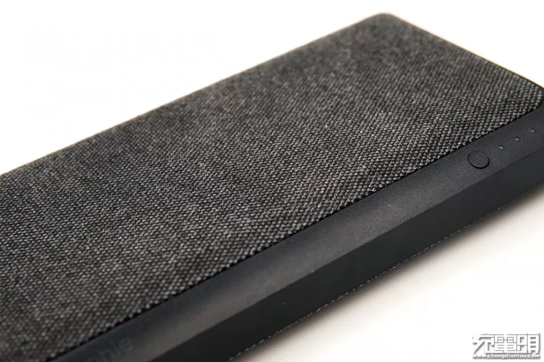 这款移动电源外观用料非常有意思,表面用了一块织物包裹着,手感、观感都跟普通移动电源有着很大的区别。