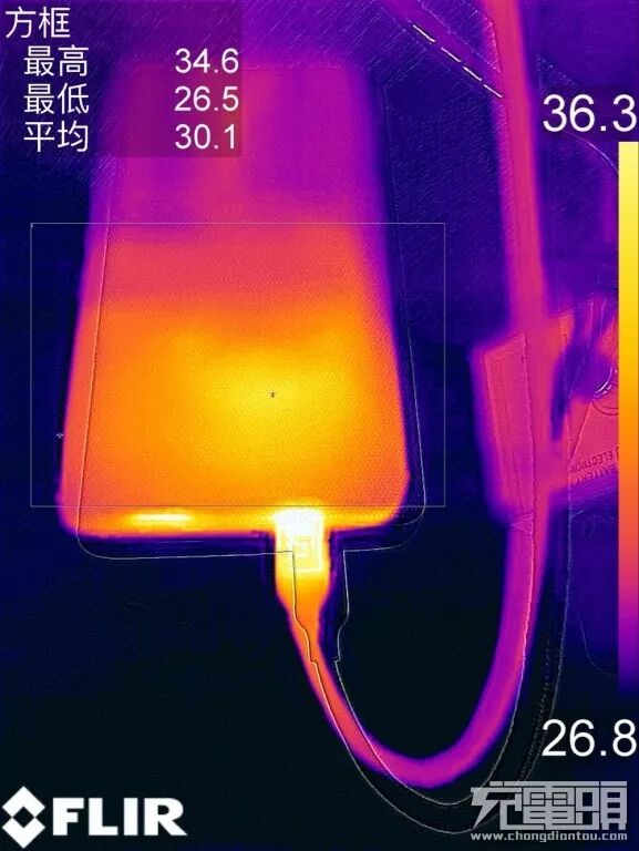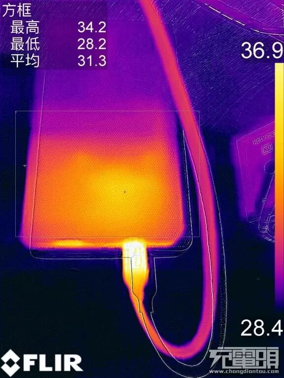 首先是5V档位,在15分钟的持续输出后,最高温度达到了34.2℃。