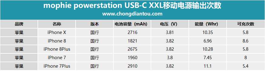 最后,有很多小伙伴肯定想知道,这款19500mAh的移动电源究竟能给我的设备充几次电?小编按85%的转换率算了下几款热门的设备,如下: