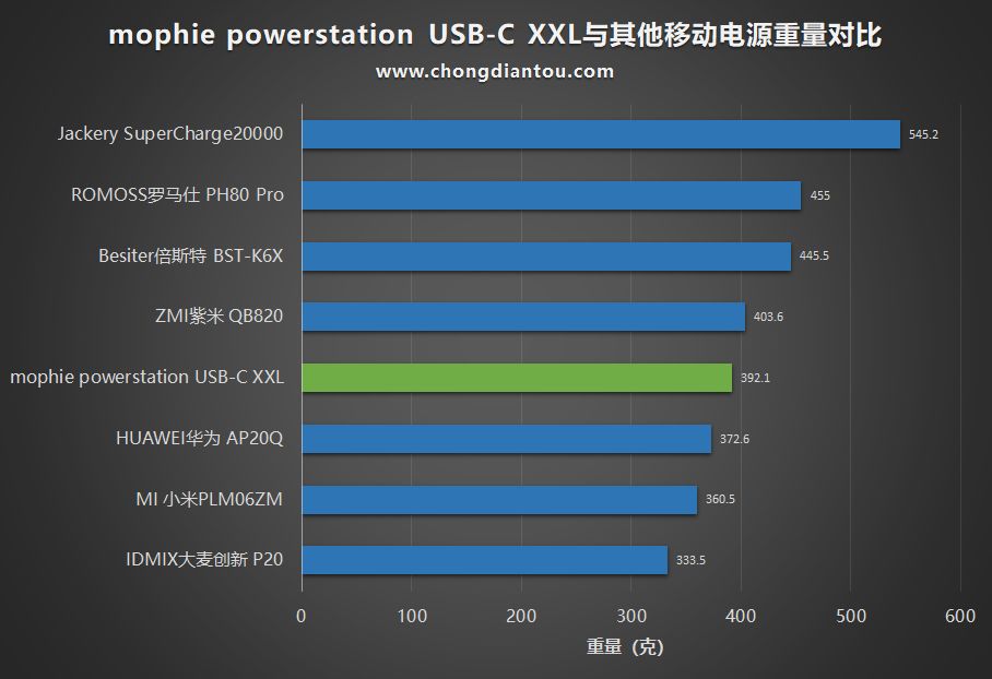 重量为392.1g,在20000mAh移动电源当中属于中等水平,约为2.3个iPhone X的重量。