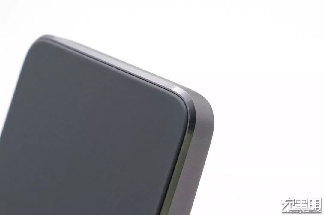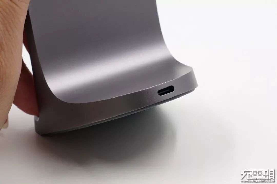 爱否开物S1立式无线充电器(全铝快充版)采用了一体铝CNC成形、美国道康宁硅胶,用料十分豪华。一体铝除了观感上带来的震撼之外,还有助于内部的热量传导,增加散热性。无线充电面板、底托以及底部都贴有胶垫,起着防滑和保护手机的作用,设计贴心,散发着高档产品气质。但是底托胶垫与壳体的贴合工艺还有待完善,这也不排除是个体问题。