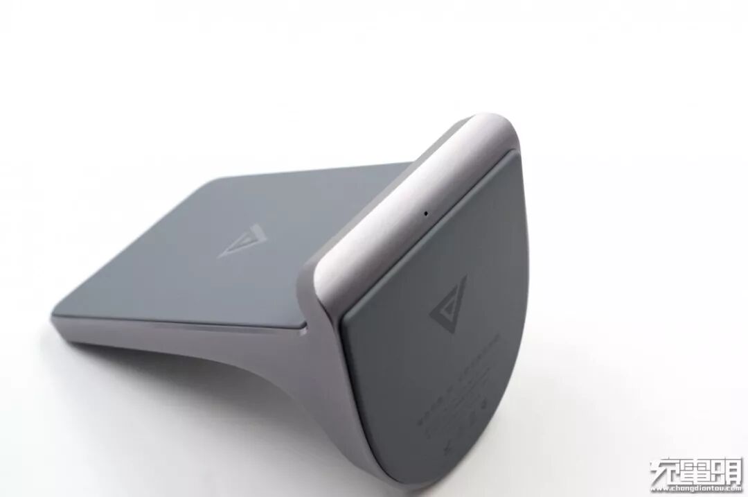 爱否无线充电器是一款立式无线充电器,壳体采用了一体铝CNC成形,对于无线充电器内部的热量起到了一个很好的传导效果,有助散热;在无线充电面板和底托贴有胶垫(材质来自于美国道康宁硅胶),起到防滑作用。