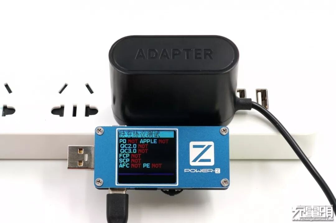 使用ChargerLab POWER-Z FL001S USB测试仪检测电源适配器协议,不支持任何快充。