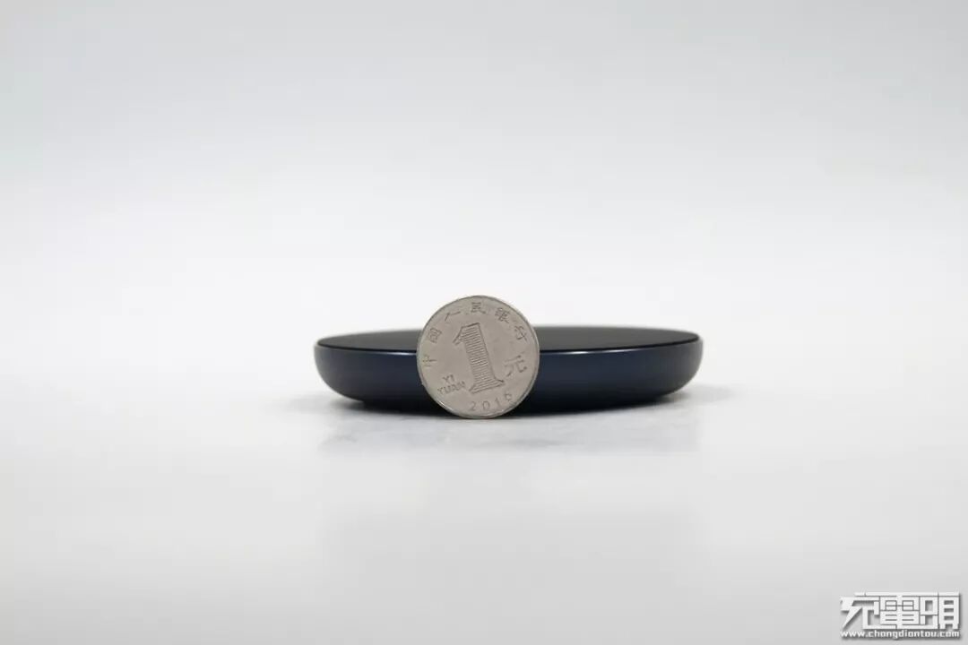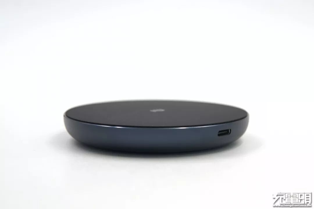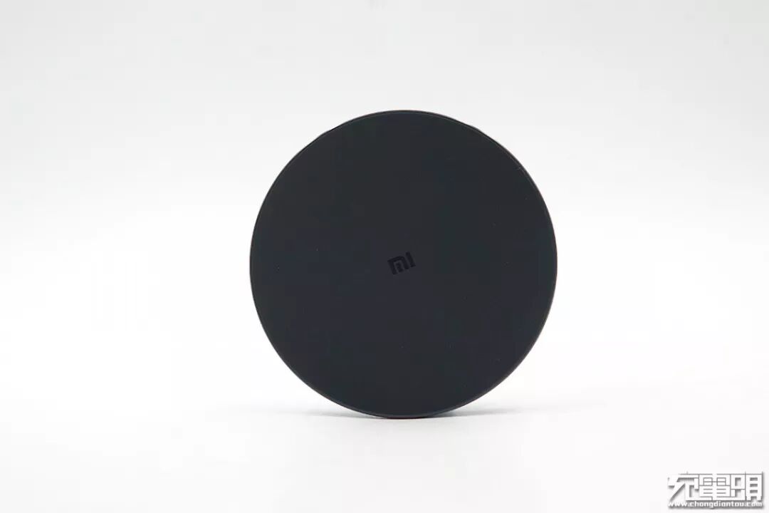 无线充电器产品颜色为黑色,正面面板上采用类肤质涂层,手感舒适,表面有一个小米的“MI”字Logo。