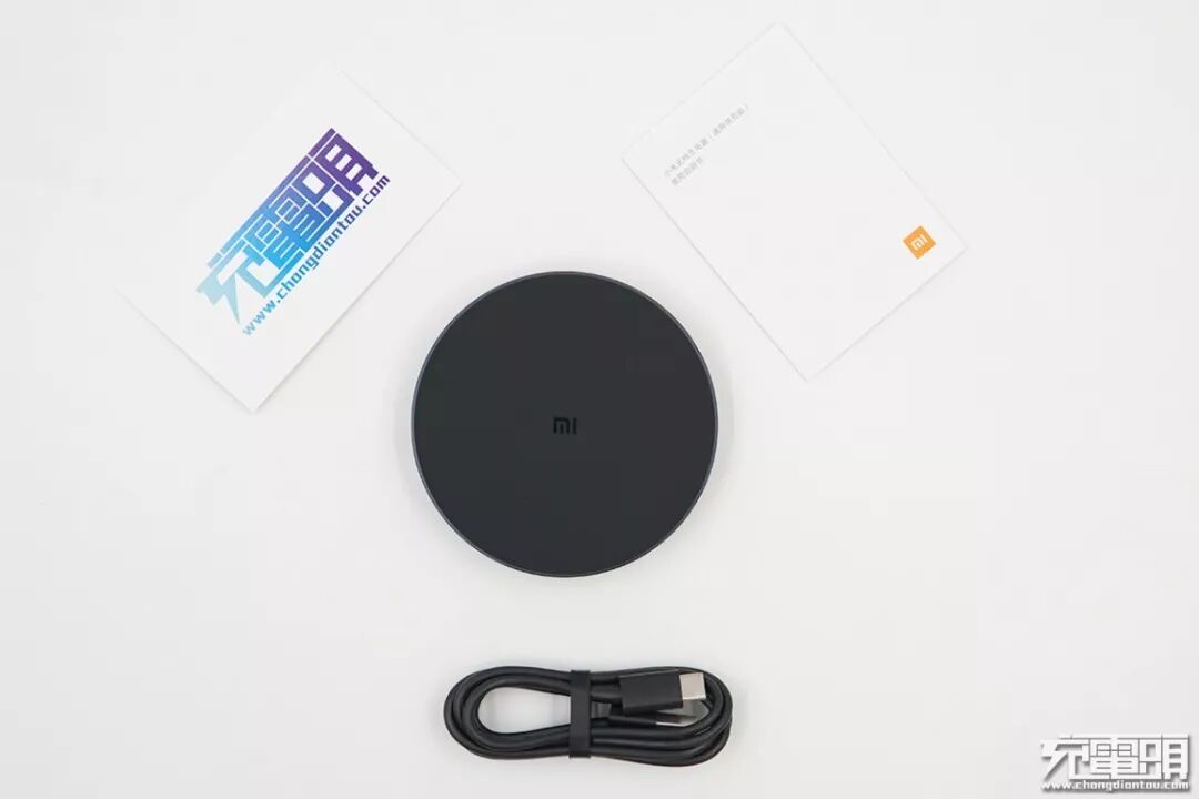 包装内含小米无线充电器1个、使用说明书一份以及一条USB Type-C数据线一条,没有附赠充电器,用户如果想要使用快速无线充电功能的话,需要自己配一个QC3.0充电器。