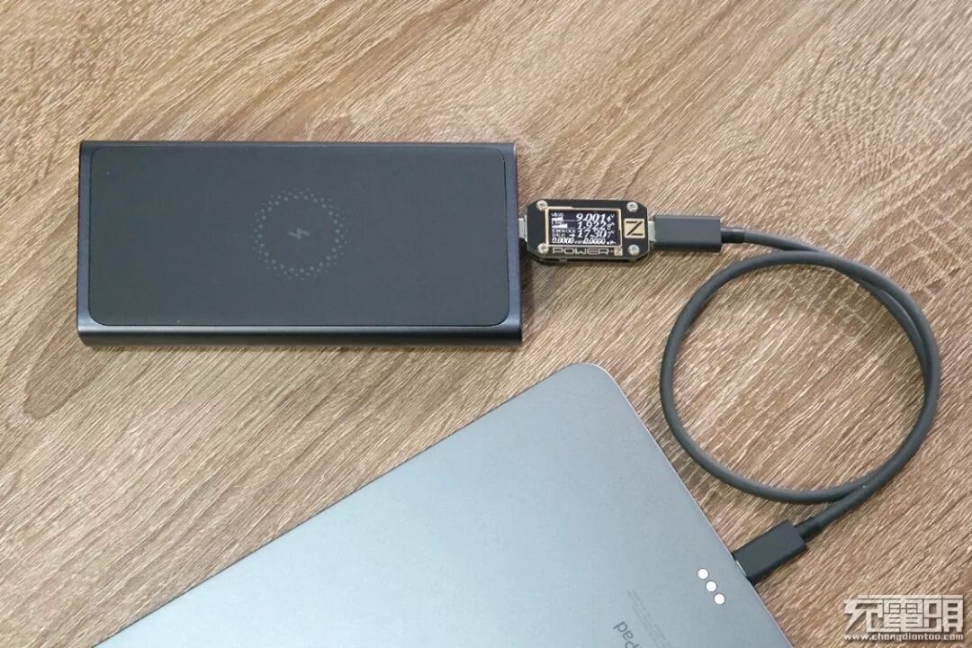USB-C除了是移动电源的输出接口之外,它还是移动电源的输入接口。使用苹果30W PD充电器给小米无线充移动电源充电,电压8.96V,电流1.91A,功率17.14W,开启PD快充。
