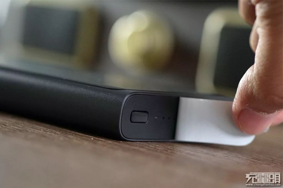 小米无线充移动电源是一款带有无线充电输出功能的移动电源,外壳采用的是黑色金属材质,表面轻微磨砂质感,手感不错。