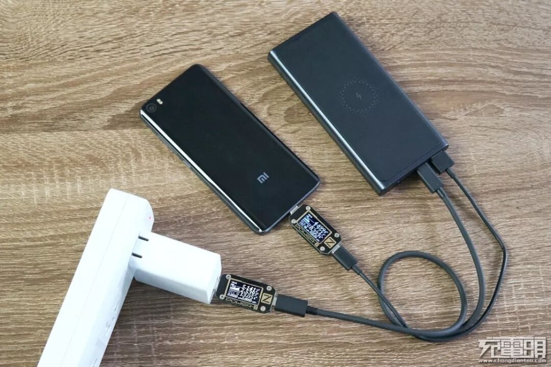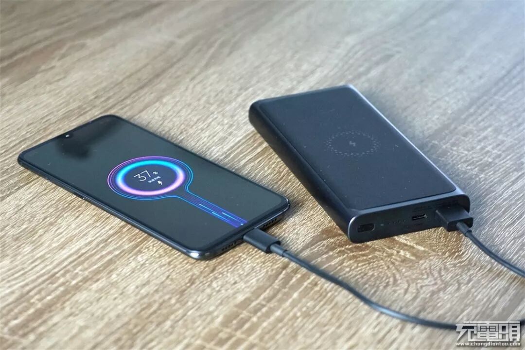 另外小米无线充移动电源可同时给三台设备充电,无线充电一台、USB-C接口一台、USB-A接口一台。