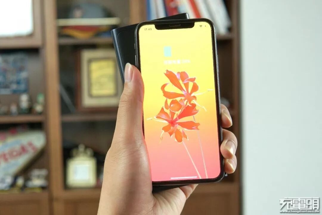 使用小米无线充移动电源给iPhone XS Max进行无线充电半小时,看看能充进多少电量。
