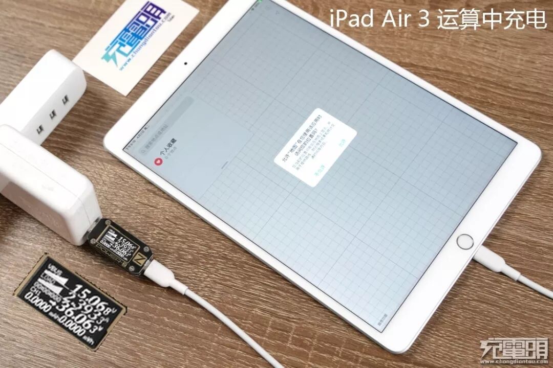 上回为大家介绍了iPad mini 5的充电情况,待机充电功率最大可达20W,运行中充电可超过30W。今天小编为大家带来的是iPad Air 3的PD充电测试,看看它又是怎么样的表现。