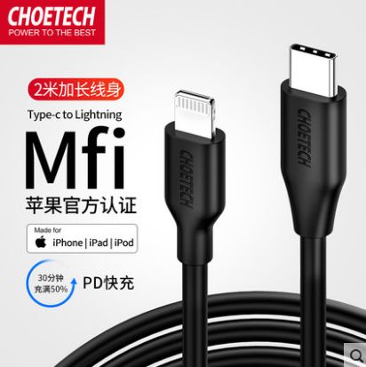一、CHOETECH MFI认证 USB-C to Lightning 2米 数据线 (5根)