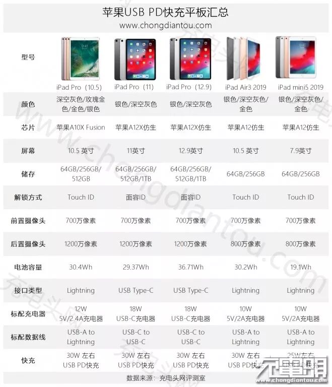 同时还需设备本身支持PD协议,以下是充电头网总结的苹果支持USB PD快充的设备汇总。