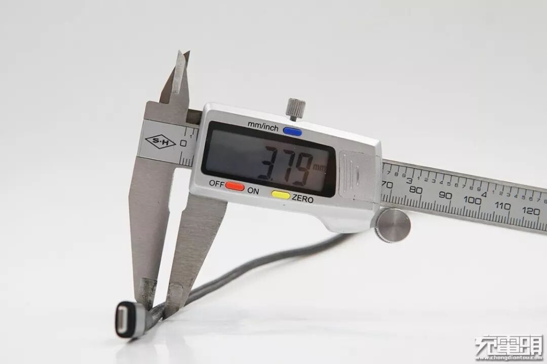 实际测量趣评测USB-C to Lightning 数据线直径粗3.79mm。