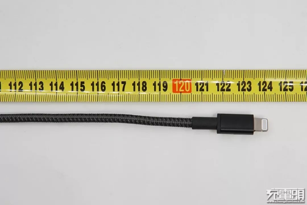 实际测量趣评测USB-C to Lightning 数据线线长为124cm。