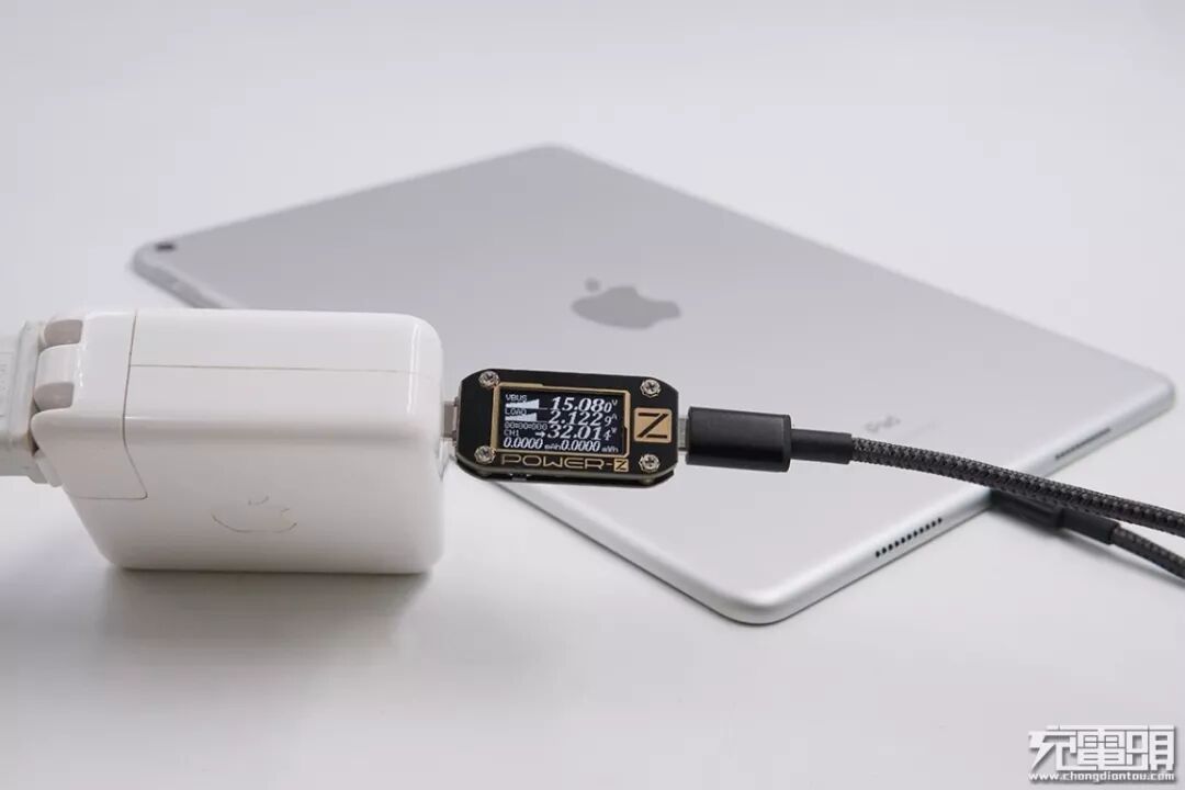 使用趣评测USB-C to Lightning数据线+苹果61W PD充电器给iPad Pro 10.5英寸充电,电压15.08V,电流2A,功率30.16W,开启PD快充。
