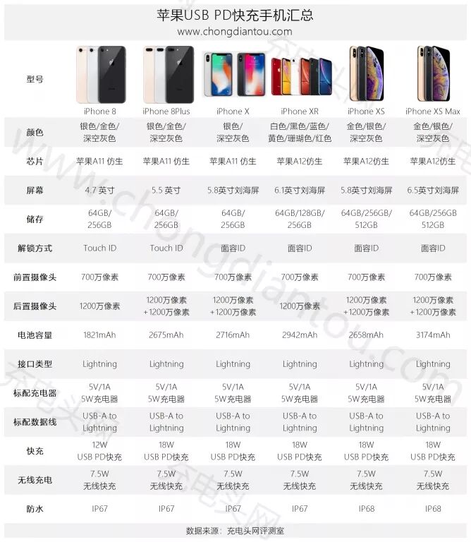 苹果支持USB PD快充的iPhone型号汇总。