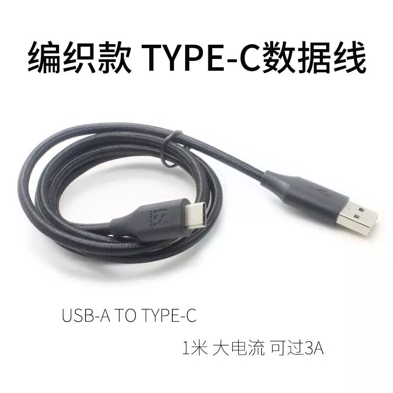编织线身耐磨耐用,USB-A to USB-C接口,线长1米,可过3A电流,颜色为黑色,适用于充电与数据传输,散装介意慎拍。