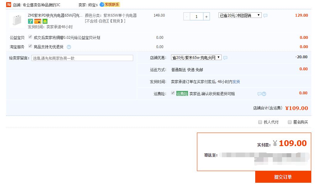 上车方式:拍下时备注“充电头网团购”并联系淘宝店客服改价