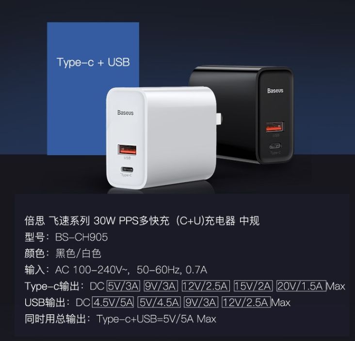 倍思30W 1A1C PD双口充电器,支持APPLE2.4、QC3.0、AFC、FCP、SCP、PE、PD、PPS等多项快充协议,支持输出电压:5V3A / 9V3A / 12V2.5A / 15V2A / 20V1.5A,充电头网特约团购价49元,感兴趣的小伙伴可以上车。