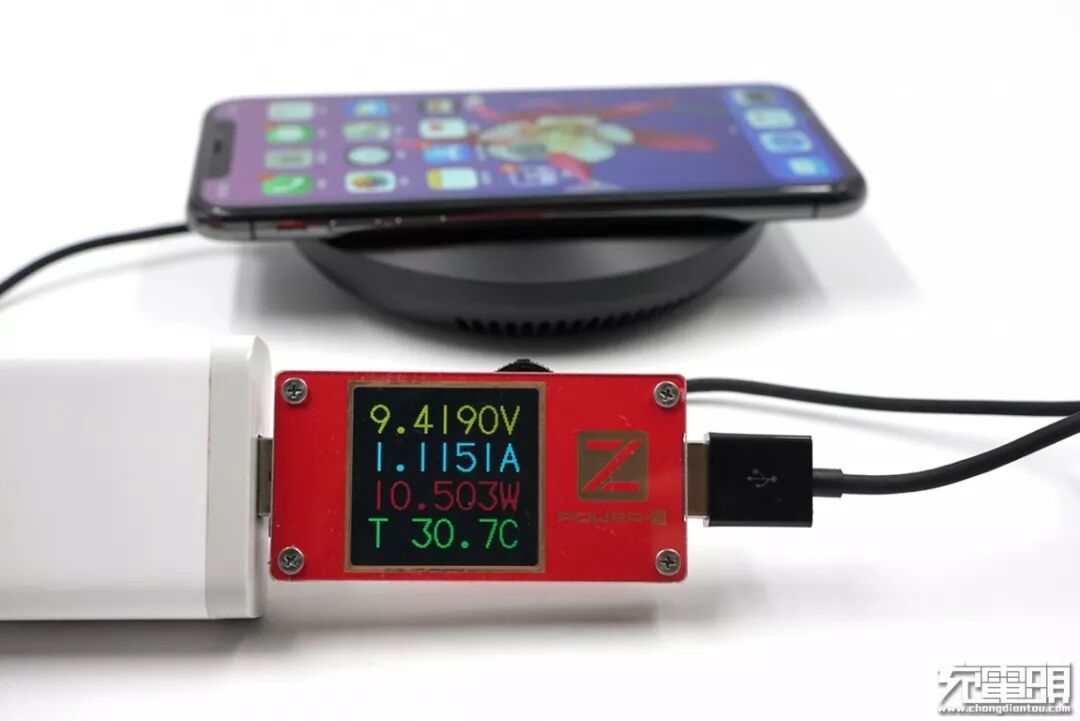 使用爱否W1无线充电器给小米9充电,输入端功率为11.24W,表现不错。