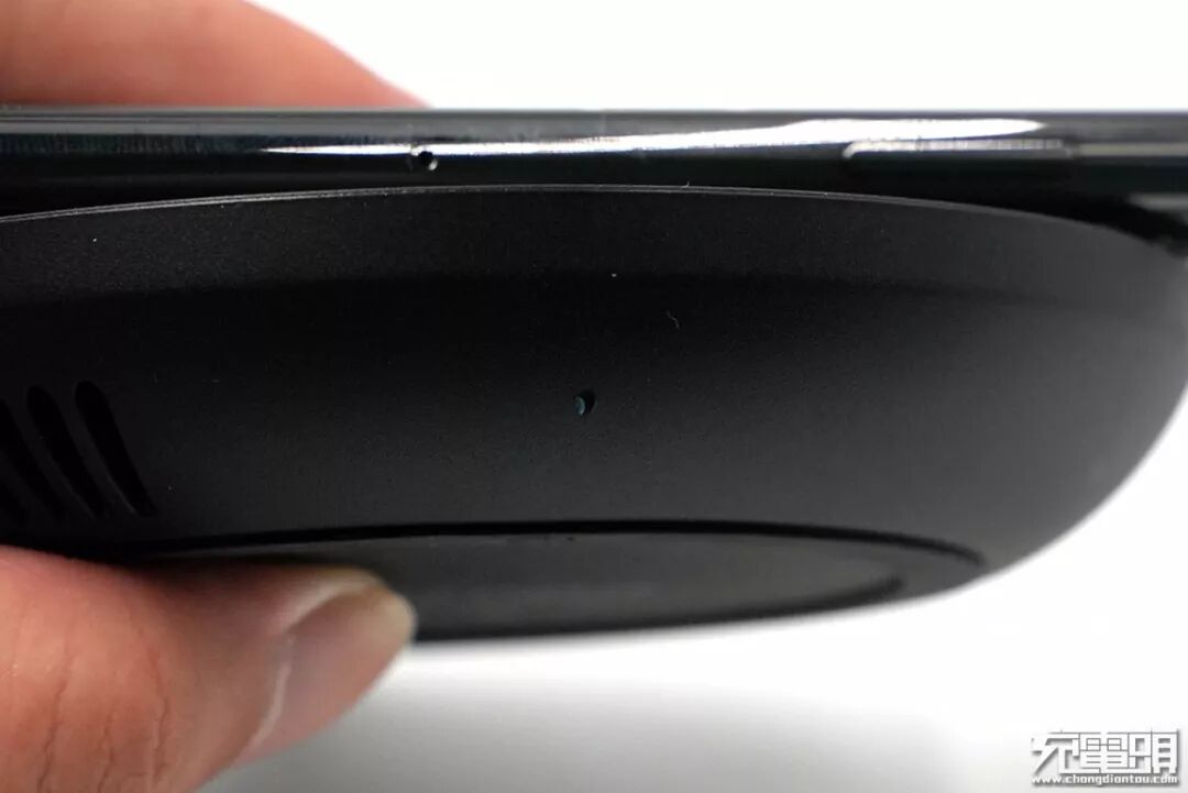 内环是一个凹下去的洞,可以直接看到内置的悬浮风扇,洞的侧面并非封闭,而是与无线充电器内部相通,这样可以形成风道,在内置的风扇工作时让空气流通,散热效果更加好。