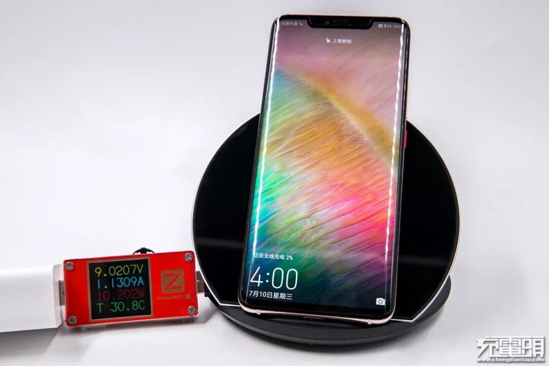 使用WEPOR ChargeDock X折叠无线充给华为Mate20 Pro充电,输入端功率为10.20W,可以充电。