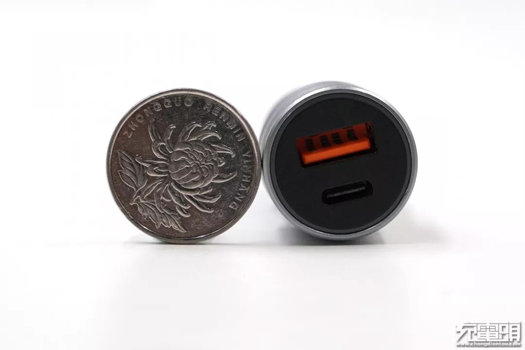 车充端面横截面积与一元硬币差不多大。
