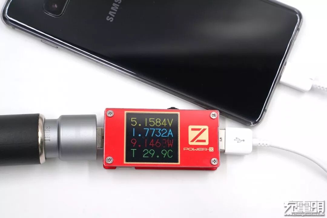 充三星S10+,电压5.15V,电流1.77A,功率9.14W,普通充电模式。