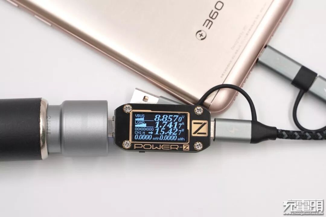 充360 N5,电压8.85V,电流1.74A,功率15.42W,开启QC快充。