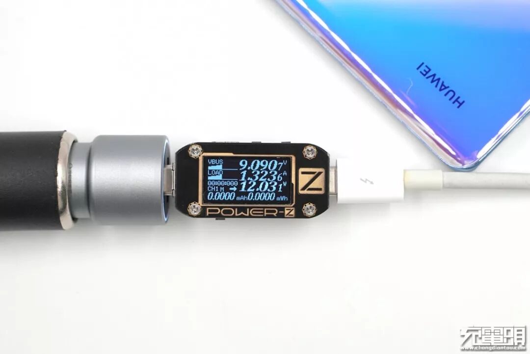 充华为P30 Pro,电压9.09V,电流1.32A,功率12.03W,开启PD快充。