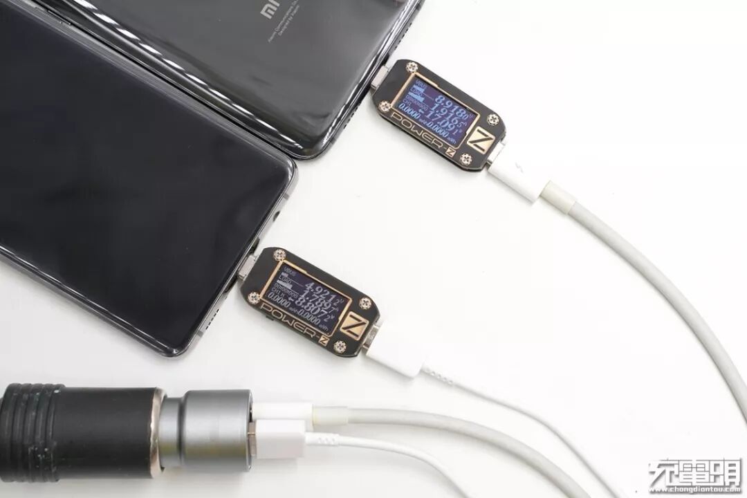 邦克仕车充支持双口同时输出,双口输出的情况下,USB-C口任然可以快充输出。同时给三星S10+(USB-A)、小米9(USB-C)充电,当前功率分别为8.8W、17.09W。