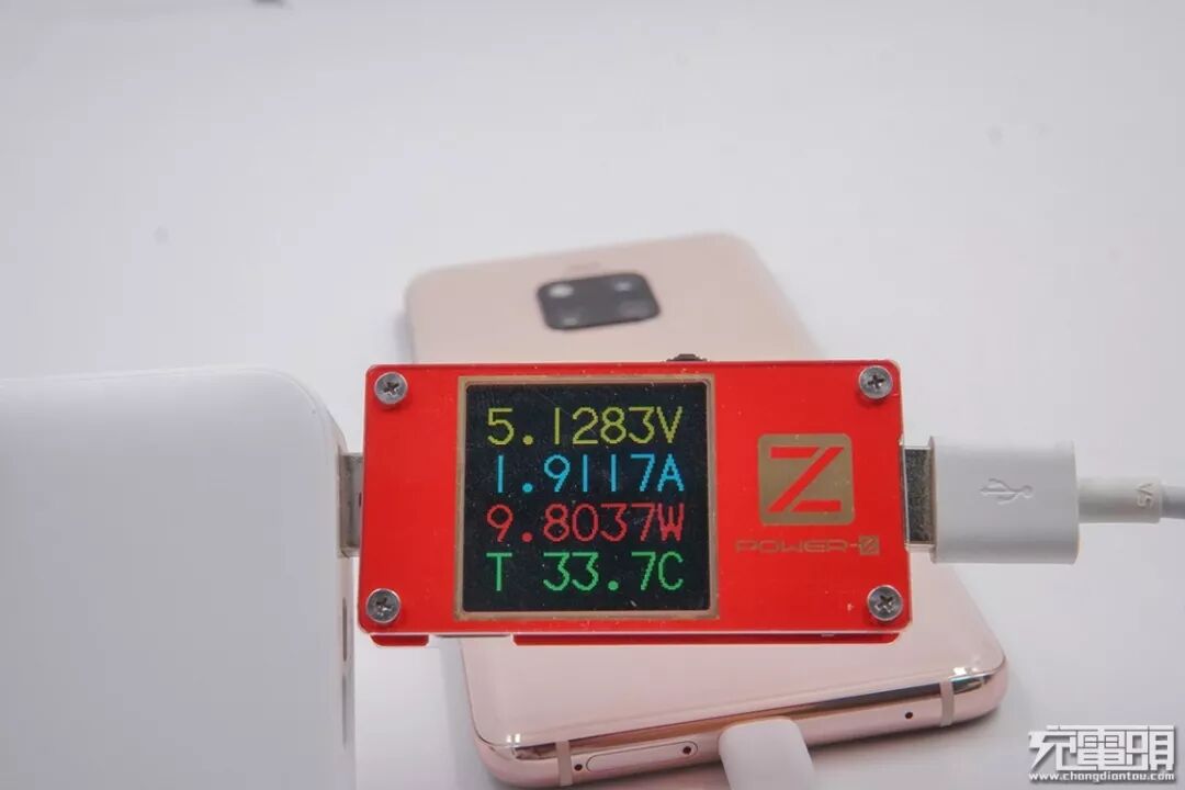 充华为Mate20 Pro,电压5.12V,电流1.91A,功率9.80W。