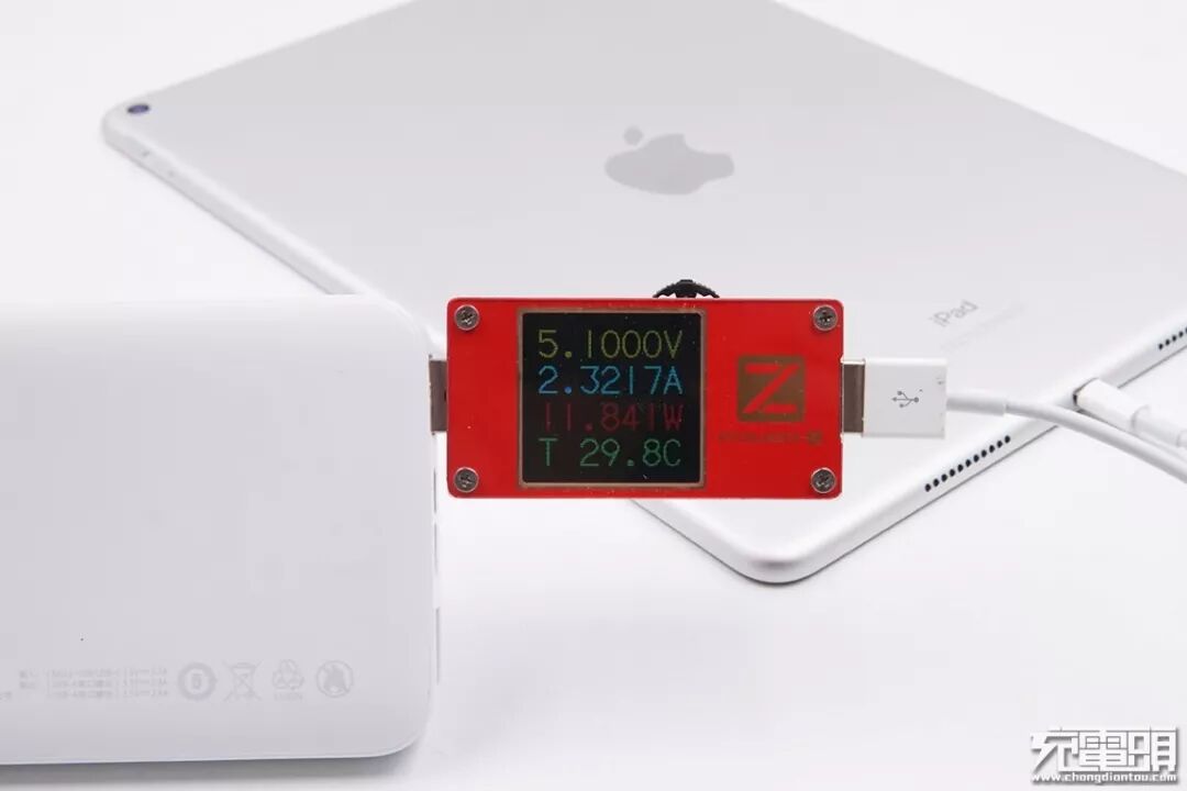充iPad Air 3,电压5.10V,电流2.32A,功率11.84W,开启Apple2.4A协议充电。