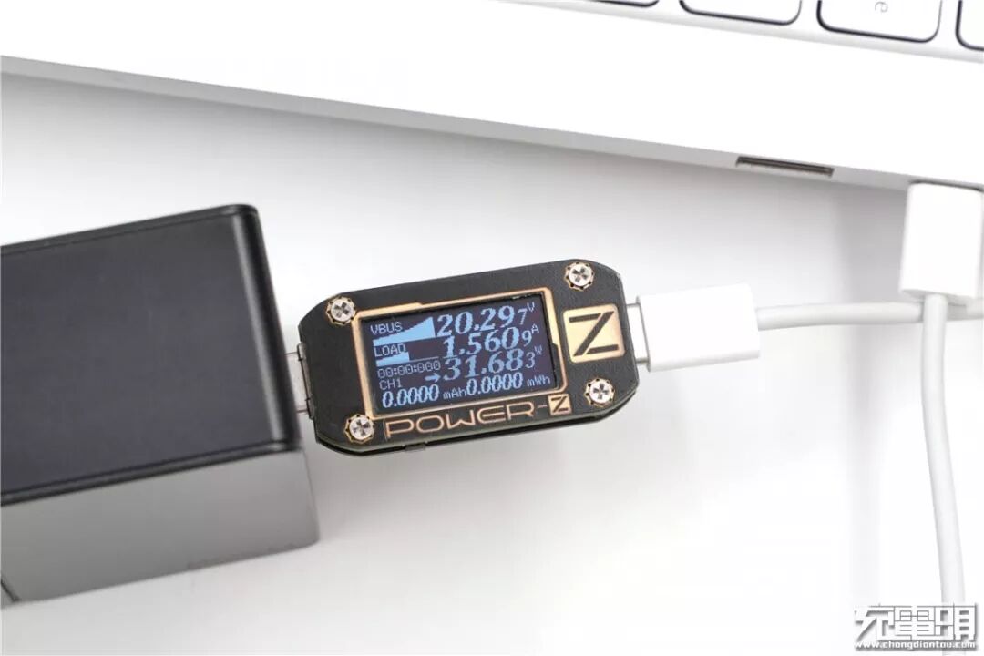 充小米笔记本Air,电压20.29V,电流1.56A,功率31.68W,开启PD快充。